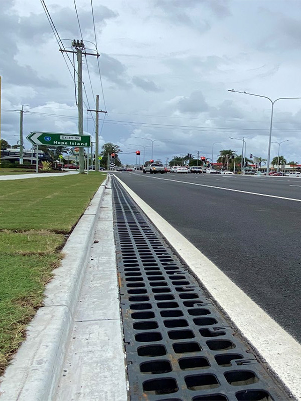 The upgrade involved the creation of several turning lanes where surface drainage was required to stop stormwater from ponding against the road shoulder. A continuous capture linear drain was deemed the most effective method to manage the surface runoff. Engineers required a purposed design solution in such a tight corridor in a highly trafficked environment.