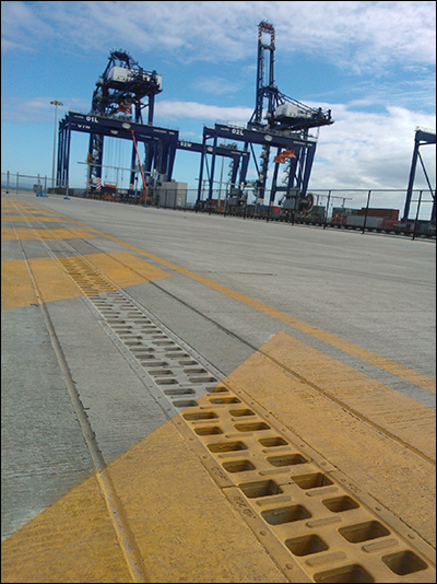 Ports provide the most punishing environments for drainage systems. Busy maritime operations involve the movement of very heavy vehicles as they load and unload containers. Their repetitive nature imposes severe stresses on flat apron areas that are difficult to drain.