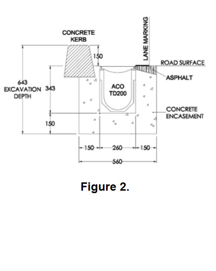 - ACO’s TraffikDrain TD200 System – grated trench drainage (Figure 2.)