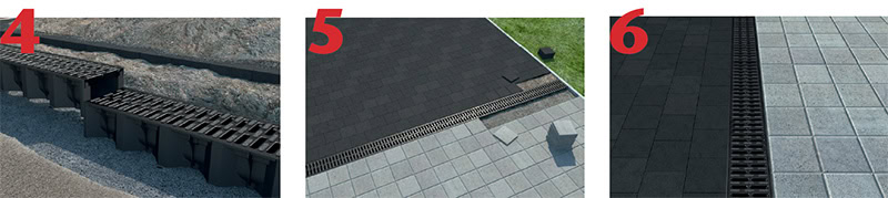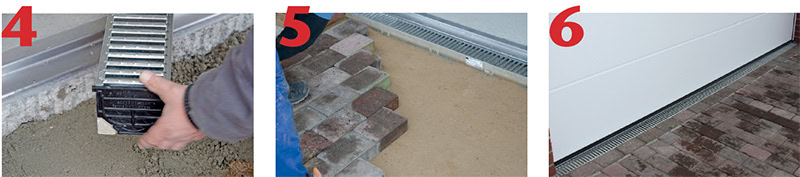 6. Finish pavement, pavers must be 3 mm higher than the grate.