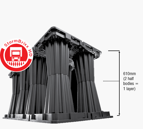 Our modular StormBrixx units, available in standard and heavy-duty options, deliver high storage capacity, exceptional stability and easy installation. These OSDs are also customisable, ensuring you receive the correct and most robust stormwater management solution.